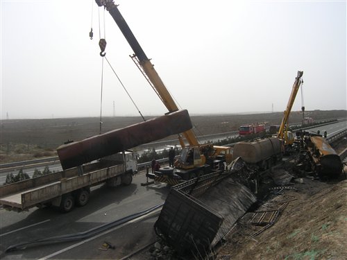 隨后,中隊(duì)官兵利用車載泡沫撲滅明火,同時(shí)對(duì)車輛實(shí)施冷卻控制。此時(shí)罐車油箱已經(jīng)燒毀,隨后,消防官兵對(duì)起火的拉煤車進(jìn)行撲救,與交警組織群眾轉(zhuǎn)移煤以防火勢(shì)蔓延。于10時(shí)32分成功撲滅火災(zāi)。此次事故中,后一輛拉煤車駕駛室完全燒毀,死亡一人。