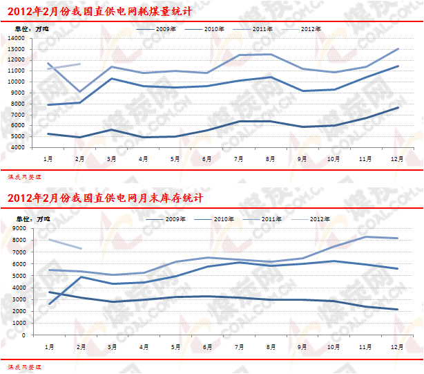 2012年02月全國重點(diǎn)發(fā)電企業(yè)耗煤/庫存情況 | |||||||||||