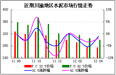 與整個(gè)西南市場(chǎng)相比,川渝市場(chǎng)的走勢(shì)說(shuō)不上好,但也不算太差。雖然近期一直處于下跌通道,但本月跌幅略有縮小,市場(chǎng)信心開(kāi)始逐步恢復(fù)。本月川渝市場(chǎng)均價(jià)P.O42.5標(biāo)號(hào)水泥(下同)為300.7元/噸,相比上月的306.1元/噸,跌幅為1.8%,而上月跌幅為3.3% 。