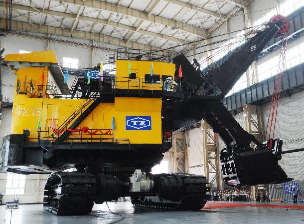 當日,世界上首臺規(guī)格最大、技術性能最先進、生產能力最高的WK-75型礦用挖掘機,在山西太重集團公司正式下線。這臺從設計到制造完全國產化的挖掘機,采用了世界先進的智能化控制技術、運行狀態(tài)自動檢測和故障診斷、能量回饋等技術,可滿足國內外現代化大型露天礦山高效、低耗、智能化和綠色開采的需要。據介紹,WK-75型礦用挖掘機總長37.5米,寬17.3米,從履帶到頂部高達23.5米,總重量近2000噸,其一個月的煤炭開采量可達到500萬噸,相當于一座大型煤礦一年的產量。WK-75型礦用挖掘機的成功下線,標志著我國在重大裝備領域實現了從“跟隨”到“引領”質的飛躍。