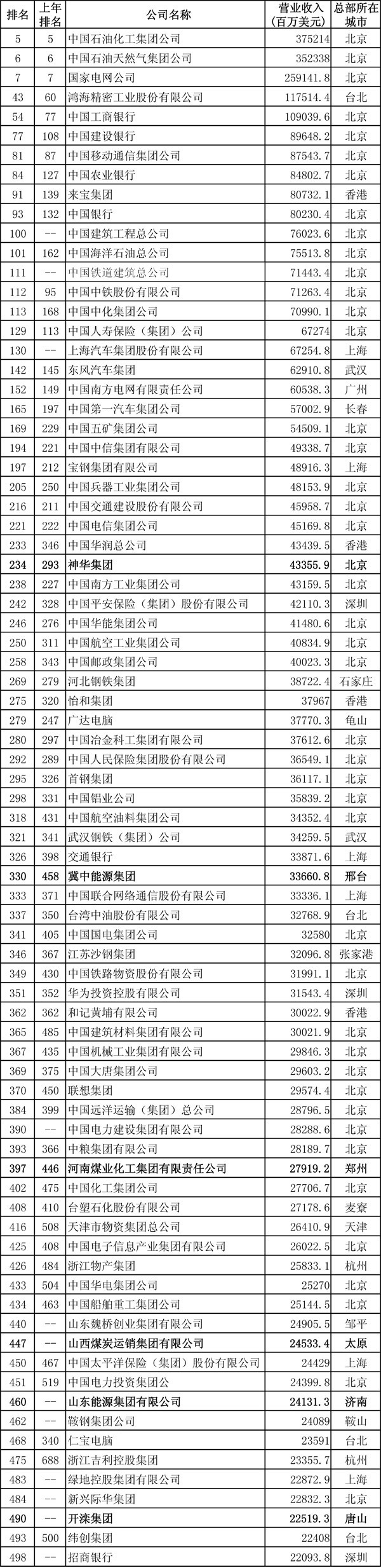 備受關(guān)注的2012年《財富》世界500強榜單昨日晚間正式揭曉,荷蘭皇家殼牌石油公司去年營業(yè)收入達到4844.9億美元,排名今年的世界500強之首,緊隨其后的是另一家石油巨頭埃克森美孚,而去年排名第一的零售巨頭沃爾瑪今年下滑至第3位。據(jù)統(tǒng)計,今年共有79家中國公司上榜,上榜公司數(shù)量已經(jīng)超過日本,僅次于美國的132家位居第二。其中,神華集團、冀中能源集團、河南煤化集團、山西煤運集團、山東能源集團、開灤集團等六家大型煤炭集團入圍,創(chuàng)造了五百強煤炭企業(yè)數(shù)量新紀(jì)錄。