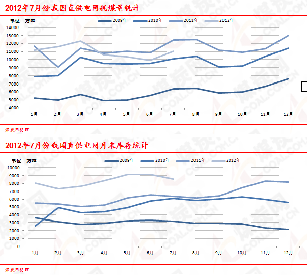 2012年7月全國重點發(fā)電企業(yè)耗煤/庫存情況 | |||||||||||