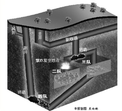 據(jù)搜救人員介紹,該煤礦主巷道深約3000米,瓦斯爆炸發(fā)生在采煤二隊(duì)作業(yè)面,由于爆炸沖擊波強(qiáng)大,連通采煤二隊(duì)作業(yè)面和采煤三隊(duì)作業(yè)面的副巷道嚴(yán)重坍塌。此前井下搜救出的多具遺體,主要是在三隊(duì)作業(yè)面和坍塌的副巷道。截至30日14時(shí),采煤三隊(duì)作業(yè)面處已經(jīng)搜救完畢,未新發(fā)現(xiàn)幸存者和遇難者遺體。