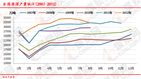2012年8月 | 產(chǎn)量 | 32200 | 33792 | -1592 | -4.7 | 262469 | 248735 | 13734 | 5.5 |