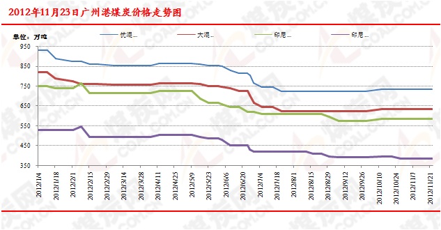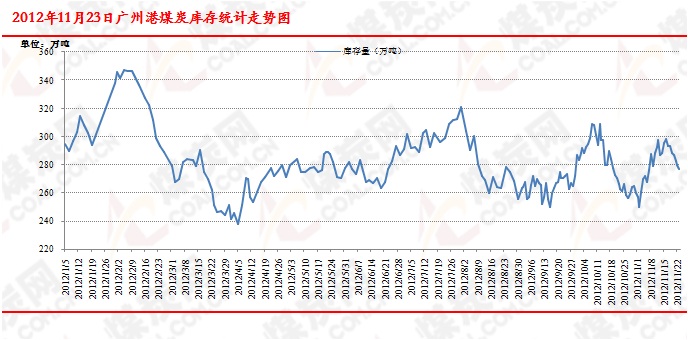 港口庫存方面:煤炭網(wǎng)信息研究中心數(shù)據(jù)顯示,截止到11月23日,廣州港存煤276.94萬噸,較上周同期減少20.95萬噸,F(xiàn)其中新沙公司存煤167萬噸;周環(huán)比減少4萬噸;西基公司存煤54萬噸,周環(huán)比減少7萬噸;新港公司存煤7.9萬噸,環(huán)比減少2.9萬噸;黃埔公司存煤48.02萬噸,環(huán)比減少7.07萬噸。
