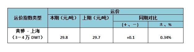 此表包含黃驊港航線運(yùn)價(jià)指數(shù)(黃驊-上海航線)運(yùn)價(jià)指數(shù)的本期和上期數(shù),以及同比增減。