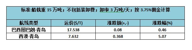 巴西/澳洲-中國平均運(yùn)費(fèi)。