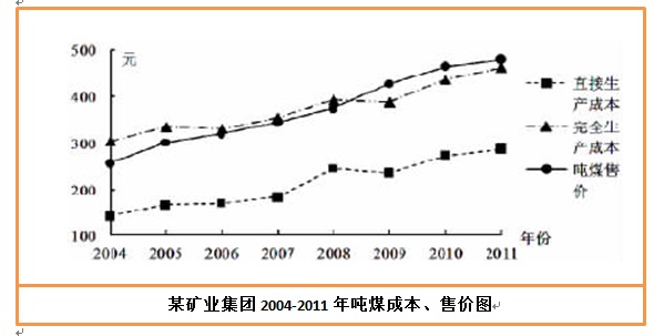 由上圖可知,2004~2011 年,該集團(tuán)按現(xiàn)行的成本構(gòu)成計算的煤炭成本始終低于煤炭售價,尤其是最近兩年兩者相差較大,給人造成煤炭行業(yè)是暴利行業(yè)的錯覺,而按完全成本構(gòu)成計算的煤炭成本直到 2009 年才高于煤炭售價,該集團(tuán)真正實現(xiàn)了扭虧為盈。該集團(tuán)的煤質(zhì)較好,售價較高,而對于生產(chǎn)成本與該集團(tuán)相差不多而噸煤售價遠(yuǎn)低于 500 元的煤炭企業(yè),其噸煤利潤會很低,甚至虧損。如果考慮到2011年10月以后我國動力煤價格大幅下挫,當(dāng)前北方地區(qū)港口煤炭價格和沒有下滑前相比已經(jīng)下跌了280元/噸左右,以及當(dāng)前煤價和2008年初時的煤價基本相當(dāng)?shù)膶嶋H,把當(dāng)前煤炭價格的理性回歸說成是三大集團(tuán)聯(lián)手操縱煤價意圖在未來的動力煤年度長協(xié)談判中占盡先機未免有失公允。