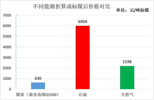 圖2 不同能源折算成標(biāo)煤后價(jià)格對比