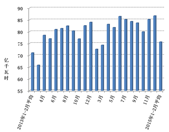 1-3月份,全國發(fā)電設備累計平均利用小時954小時,同比下降84小時,降幅比2014年同期擴大48小時。
