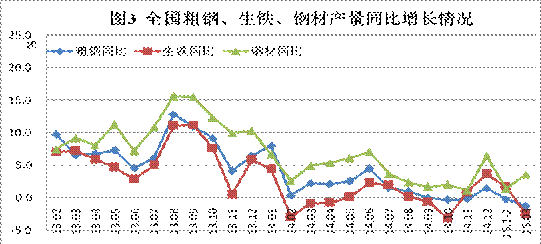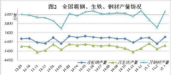 2015年3月,全國(guó)共生產(chǎn)粗鋼6948.49萬(wàn)噸、生鐵6024.75萬(wàn)噸、鋼材9755.88萬(wàn)噸,其中納入中國(guó)鋼鐵工業(yè)協(xié)會(huì)月報(bào)統(tǒng)計(jì)的會(huì)員鋼鐵企業(yè)共生產(chǎn)粗鋼5205.56萬(wàn)噸、生鐵5262.93萬(wàn)噸、鋼材5105.21萬(wàn)噸,分別占全國(guó)粗鋼產(chǎn)量的74.92%、全國(guó)生鐵產(chǎn)量的87.36%、全國(guó)鋼材產(chǎn)量的52.33%。