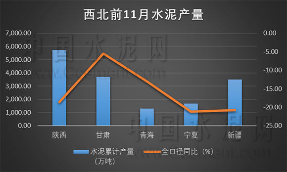 今年由于地方財(cái)政去杠桿導(dǎo)致基建開工率底,進(jìn)而導(dǎo)致水泥需求下滑明顯并不止陜西一省。據(jù)統(tǒng)計(jì),今年前11月包括青海、新疆、寧夏、甘肅在內(nèi)的所有西北省份水泥需求都下跌明顯,除甘肅外,其余西北各省水泥需求下滑都超過(guò)15%。