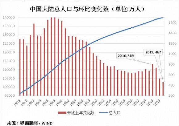 1月17日,國(guó)家統(tǒng)計(jì)局發(fā)布了最新人口數(shù)據(jù)。2019年,中國(guó)大陸總?cè)丝谕黄屏?4億人,全年出生人口1465萬(wàn)人,相當(dāng)于一年生出了丹麥+芬蘭+蒙古的總?cè)丝,全年人口凈增?67萬(wàn)人,相當(dāng)于一個(gè)新西蘭。