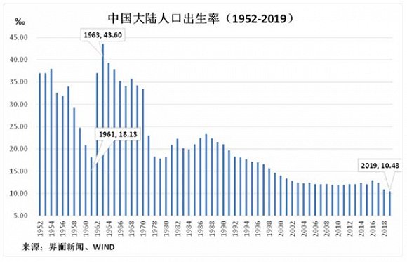 2019年出生率降至10.48‰,不過(guò),與2018年相比,2019年出生人口減少的數(shù)量較有顯著下降。2019年全年出生人口比2018年減少58萬(wàn)人,而2018年比2017年減少200萬(wàn)人。
