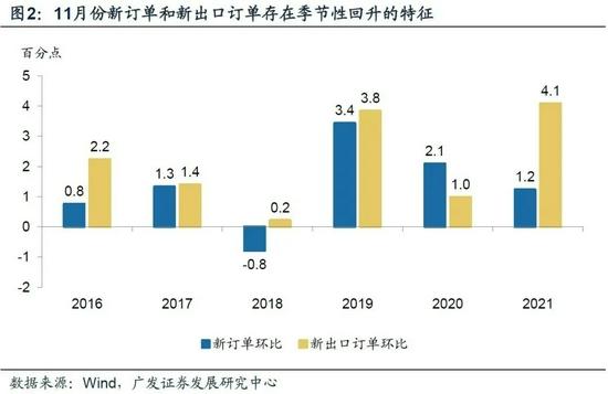 11月PMI回升0.9個點(diǎn)至50.1。這一表現(xiàn)略超預(yù)期。我們理解動能來自兩個方面:一是需求分項(xiàng)可能存在一定季節(jié)性,過去5年的每個11月新出口訂單指數(shù)均出現(xiàn)環(huán)比上升,有4年新訂單指數(shù)環(huán)比回升;二是生產(chǎn)分項(xiàng)面臨供給約束解除、煤炭價(jià)格回落后的反彈,從南方八省發(fā)電耗煤量、中下游行業(yè)開工率等高頻數(shù)據(jù)也能看出這一點(diǎn)。
