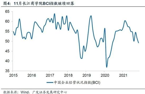 第六,不過需要提示的是,對于經(jīng)濟(jì)在11月的環(huán)比反彈,不可有太強(qiáng)預(yù)期:(1)如前所述,反彈與限電限產(chǎn)影響的消除、海外圣誕季季節(jié)性有較大關(guān)系,影響不具備可持續(xù)性;(2)代表更持續(xù)預(yù)期的PMI就業(yè)、生產(chǎn)經(jīng)營活動預(yù)期分項(xiàng)均在低位徘徊;(3)歷史上對經(jīng)濟(jì)拐點(diǎn)反映的準(zhǔn)確度較高的長江商學(xué)院BCI指標(biāo)本月繼續(xù)下行。