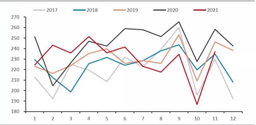 中國(guó)生鐵日均產(chǎn)量情況走勢(shì)圖(單位:萬(wàn)噸)