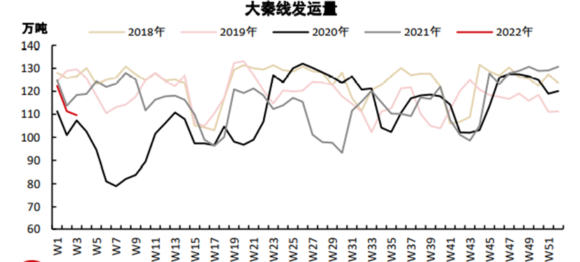 2021年1-12月大秦線累計完成貨物運輸量42103萬噸,同比增長3.96%,增幅較前11月收窄0.05個百分點。