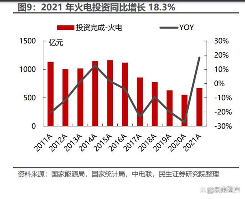 2020 年“雙碳”目標(biāo)提出伊始,在 2030 碳排放達(dá)峰、2060 碳中和的中遠(yuǎn)期 目標(biāo)下,以煤電為主的火電在國內(nèi)電源裝機(jī)結(jié)構(gòu)中的角色定位頗為尷尬,“消滅煤 電”甚至“火電已死”的討論不絕于耳,大有 2011 年福島核事故后社會輿論對于 核電的態(tài)度。但電源結(jié)構(gòu)的改變遠(yuǎn)不像想象中的那么簡單。當(dāng)前,火電仍是我國電 力生產(chǎn)的“壓艙石”,截至 2021 年底,我國火電裝機(jī) 12.97 億千瓦,占全國裝機(jī) 容量的 54.6%,占全社會發(fā)電量的 67.4%。