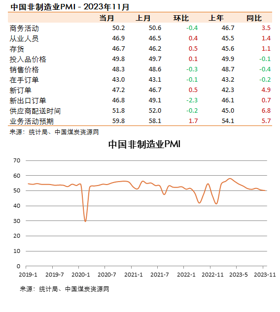 11月份,非制造業(yè)商務(wù)活動(dòng)指數(shù)為50.2%,比上月下降0.4個(gè)百分點(diǎn),仍高于臨界點(diǎn),非制造業(yè)擴(kuò)張步伐有所放緩。