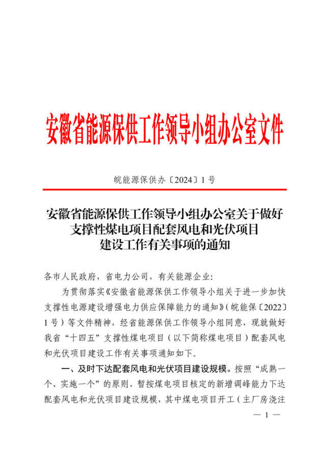 近日,安徽省能源局印發(fā)了《關于做好支撐性煤電項目配套風電和光伏項目建設工作有關事項的通知》。