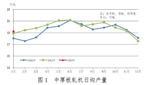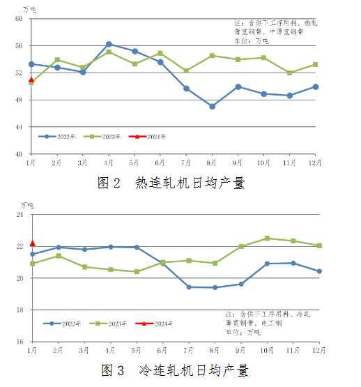中厚板軋機、熱連軋機、冷連軋機日均產(chǎn)量變化見圖1、圖2、圖3。