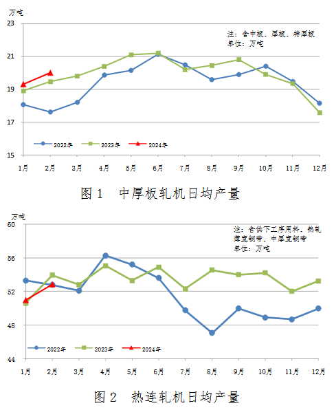2月份生產(chǎn)特厚板、中厚板580萬(wàn)噸,同比增加35萬(wàn)噸,上升6.4%;累計(jì)生產(chǎn)1182萬(wàn)噸,同比增加54萬(wàn)噸,上升4.8%。