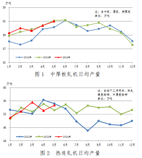 中厚板軋機5月份生產(chǎn)特厚板、中厚板650萬噸,同比減少4萬噸,下降0.6%;累計生產(chǎn)2979萬噸,同比減少9萬噸,下降0.3%。