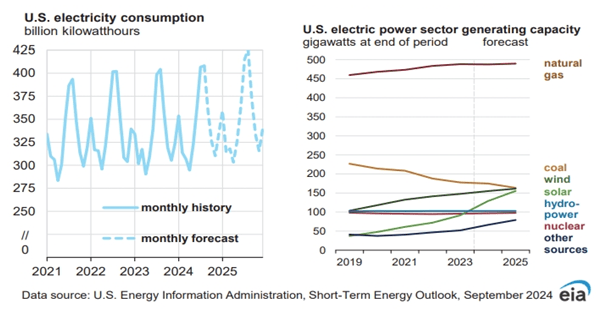 美國能源信息署(EIA)9月11日發(fā)布的最新《短期能源展望》報告顯示,2024和2025年,美國電力需求預計將創(chuàng)歷史新高。
