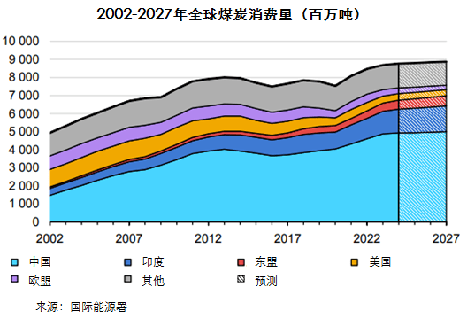 報告預(yù)計,到2027年前,全球煤炭需求預(yù)計將維持區(qū)間內(nèi)窄幅波動。盡管印度和東盟國家需求增長抵消了歐盟和美國的下降,但中國仍是全球煤炭需求的主要決定因素。