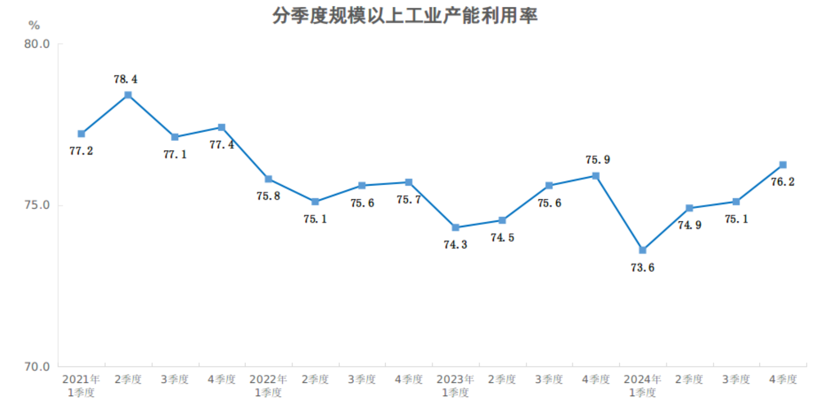 2024年四季度規(guī)模以上工業(yè)產(chǎn)能利用率