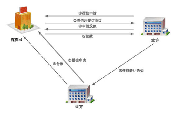 預付款(未來貨權)保理融資業(yè)務是煤炭網(wǎng)以控制購貨商(借款人)向供貨商(收款人)購買的煤炭的提貨權為手段,向購貨商提供融資,用于支付供貨商貨款,由供貨商根據(jù)約定按煤炭網(wǎng)指令進行發(fā)貨的業(yè)務。該業(yè)務需要煤炭網(wǎng)對供貨商授信評估,在評估合格的情況下,煤炭網(wǎng)可面向購貨商在該供貨商取得煤炭網(wǎng)授信金額的范圍內(nèi)做預付款保理業(yè)務。